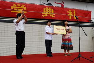 之后,校领导为我校先进班级颁发奖状,董校长为我校新一届的“周恩来班”颁发铜牌。也为我校荣获“五星社团”称号的优秀社团颁发了铜牌。