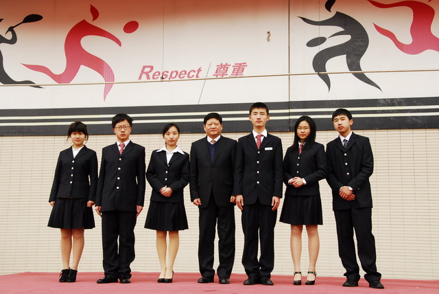 我和所有的老师、家长一起,共同期待着你们的杰出表现!(停顿、翻译——英、德、日、法)