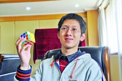 魔方,一个被拧得乱七八糟的魔方在他手中迅速转动,38秒后神奇地恢复了六面颜色。每到学习累了或