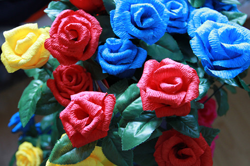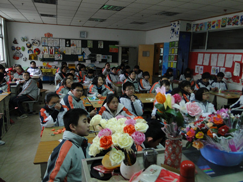 一节课时间里,六百个同学用心、用情,制作出百合花、康乃馨、玫瑰、郁金香等共计六百