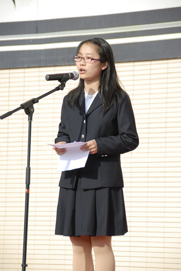 金诚至:老师们,同学们,大家早上好,我是来自高三(8)班的金诚至,很荣幸今天能够站在这里和