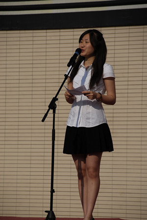 中12年级的王紫惠,很荣幸能够担任本周晨会主持人,为大