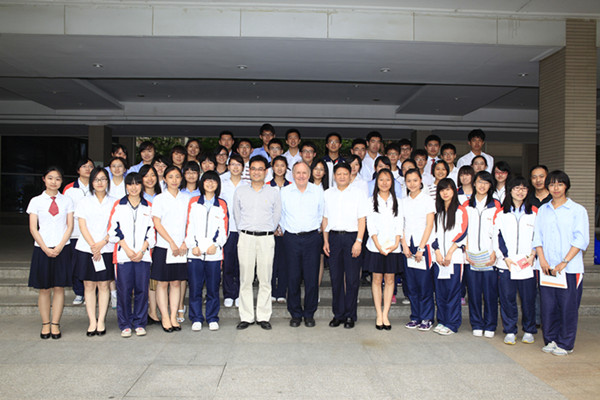 2:45许,董校长引着普雷斯科特先生走进会议室。简短的开场介绍之后,他为我们做了朴素而坦诚的演讲,从求学、从业与做人的角度分享了他的看法,以及他对于中国、中国青年人与中国教育的感想,使我们看到了他的个人经历中不仅限于专业领域的更为普世的教益。接着,南外学子与其进行了面对面的交流,有十二三名同学就其职业、研究领域、世界与中国经济形势、教育、成长、人生感悟等方方面面进行提问,现场气氛异常活跃,教授也对同学们大方自信的面貌、娴熟的英语表达能力和思考的深度表示惊喜和欣慰。