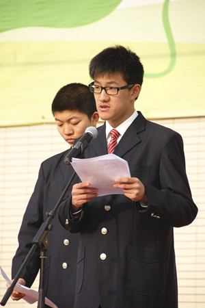 李方圻: 学习动力是指自觉的内在驱动力,主要包括学习需要、学习情感和学习兴趣。 学习的动力来自梦想,来自对于生命目标的崇高追求,来自对于生命价值的崇高体现。中外历史中无数名人的梦想造就了他们非凡的人生,也照亮了人类文明发展的历史。阿基米德说, 给我一个支点, 我可以撬动整个地球。这个支点就是人类的梦想。著名的哲学家王尔德说,即使深陷泥淖, 也要仰望星空。Abraham Lincoln说, 我们要建立一个government of the people, by the people, for the people. Martin Luther King 说, I have a dream. 俄国总理普金说, 给我二十年,我给你一个强大的俄罗斯。居里夫人说, 每个 人的一生中都有一件事情要做,要坚持直到这件事情成功。 杨志健: 学习毅力,是指自觉地确定学习目标并支配其行为克服困难实现预定学习目标的状态。它是学习行为的保持因素,在学习力中是一个不可或缺的要素。 学习毅力也叫意志力,是人们为达到预定的目标而自觉克服困难、努力实现的一种意志品质;毅力,是人的一种“心理忍耐力”,是一个人完成学习、工作、事业的“持久力”。当它与人的期望、目标结合起来后,它会发挥巨大的作用;毅力是一个人敢不敢自信、会不会专注、是不是果断、能不能自制和有没有忍受挫折的结晶。丘吉尔人生的最后一次演讲,也是其最精彩的一次演讲,只有短短的一句话‘never give up’。正是这一句话总结了他之前许许多多的想法。 陈伯钧: 学习应该有一个清晰的目标,当我们为实现这个目标而学习的时候,学习就不再是讨厌的、与自己的人生无关的负担了。这时,学习就成了有趣的、能够决定自己命运的最紧要的事。只有这样,你的学习才是主动的、自觉的,而不是被迫的、压抑的。有一个印第安人的传说也充分说明了目标对学习的重要,一个印第安人小男孩捡到了一只鹰蛋,便把它放进了松鸡的窝里。后来小鹰和其他小松鸡一起孵了出来,并和它们一起长大。这只小鹰一直认为自己是一只普通的松鸡,所以做什么事情都和其他松鸡一样。它在土里找虫子和种子吃,从来不远飞,而且翅膀扇动起来也很难看,只能飞起几尺高,总之,松鸡就应当这样飞。当这只小鹰长大后,有一天看见一只矫健的大鸟在高空中翱翔,它那金色的翅膀是那样有力,一振翅能穿入云霄。 “这只鸟多美啊!这是只什么鸟?”这只鹰向身边的一只松鸡问道。 “那是一只鹰,是鸟中之王。”那只松鸡回答说。“但是你再也不要想这件事了。你永远也不能像它那样飞翔。”结果,那只鹰也就再没想过这件事。它从未试图高飞过,最多不过挥打几下翅膀,抖抖羽毛而已。一直到死,它心里一直把自己看作是一只松鸡。在现实生活中,有许多人明明是一只鹰,却总是把自己看作是松鸡,也就只能像一只松鸡那样生活一辈子。 杨志健: 学习力是动机、毅力、能力三个要素的交集,只有同时具备了三要素,才能具备真正的学习力。当你有了努力的目标,你只是具备了“应学”的动力;当你具备了丰富的理论和实践经验,你仅仅具有 李方圻: 学习力决定我们未来的竞争力 因为,人才是有时间性的。你只能保证自己今天是人才,却无法保证明天的你依然是一个人才。复旦大学原校长杨福家教授提出,今天的大学生从大学毕业刚走出校门的那一天起,他四年来所学的知识已经有50%老化掉了。当今世界,知识老化的速度和世界变化的速度一样越来越快。所以,为了使你在明天依然是一个货真价实的人才,一定要有学习力作为你的后盾。 每一个人才背后,一定要有很强的学习力做为支撑物。如果你的学习力每况愈下,那你很可能从一个“人才”变成社会的一个“包袱”。人才其实是一个动态的概念,它不是一成不变的,不是永恒的。它需要不断地晋级,不断地发展,只有人才的学习力不断地加强,不断地提高,才能保证人才的新鲜,这样的人才才是信息时代的人才,才是真正意义上的人才。所以,人才竞争的背后隐藏着学习力的竞争。 陈伯钧: 近期,我们南外再次成为我们的老师、父母和社会津津乐道的话题。我们的学兄孙宁在李总理记 他们是我们的榜样。我们追随学兄学姐的足迹前行,不是为了享受他们开辟的道路,而是为了不迷路;拥有榜样不是为了速成,而是让我们坚定自己的目标和信念,不断提高自己的学习力。 杨志健: 我们光荣地考入南外, 这仅仅是过去, 更重要的是要有坚实的学习力, 才能使得我们具备未来的竞争力。 李方圻: 同学们, 让我们在南外这个充满美丽梦想与神话的校园里去努力学习,提升我们的学习力,并学会创新创造, 从而描绘出我们青春生命的绚丽吧! 陈伯钧: 我们要不断学习, 不断更新我们的学习力, 我们才能实现让中华民族复兴的伟大的中国梦! 合:谢谢大家!