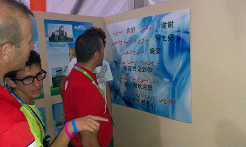 8月22日,黎巴嫩体育代表团团长带领黎巴嫩体育代表团来到了我们黎巴嫩文化小屋,与小屋的文化代表们亲切交谈并向小屋赠送了黎巴嫩体育代表团团徽、黎巴嫩手工香袋等纪念品,还特地给小屋拷贝了黎巴嫩当地民歌。因为写字的方向习惯有错误,黎巴嫩的运动员们还热情地帮助我们修改墙上的阿拉伯文字,以及帮助我们翻译黎巴嫩风景名胜的名字。我们留下了他们的联系方式,等运动员回国后再与之详细联系。体育团全体成员临行前与所有黎巴嫩小屋文化代表及带队老师合影留念。