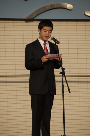 其次是评委提问阶段,这项于我是最为紧张的,因为无法预料性因素太多,我怕一时忘记如何去正确阐述自己的观点从而影响我的成绩,当然最终还是以很轻松地方式结束了这一环节,我庆幸,这是南外这所有着独特外语教学方式的学校带给我们的最大的收获,小班制,让更多的同学参与其中,锻炼大家全方位语言学习。因为学生人数少,每个学生都是课堂的主人,有机会充分展示和表达所学语言;对于所学的各种语言表达方式,都有机会轮流反复操练;因为人数少,每个学生都是老师关注的对象,他们的尊严、自信和主人翁姿态得到充分的尊重和体现,这样有利于促进课堂气氛的民主、平等,学生参与机会多多,课堂积极活跃,能达到教学-----运用-----掌握的良好效果。这些都为我在最终的决赛中能够稳定发挥提供了坚实的基础。正如许吉如学姐曾说的那样:“南外老师教的最好的一课就是尊重。”没错,尊重学生独特的个性,尊重学生尖锐的思考,尊重学生细微的努力,这些都是南外教学的特点,正是这些独特的教学方式,让我们每一个南外人在各种活动中尽情释放才能,学习上找到志同道合亦师亦友的同伴,拼搏过后无怨无悔。