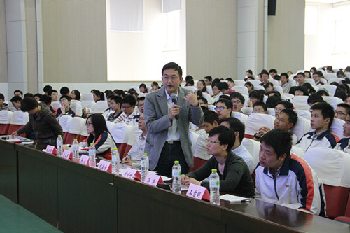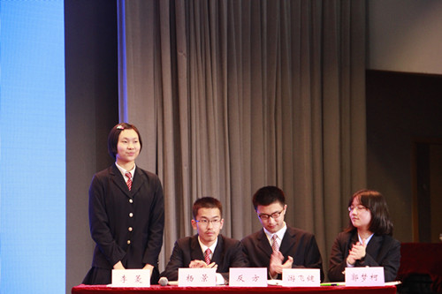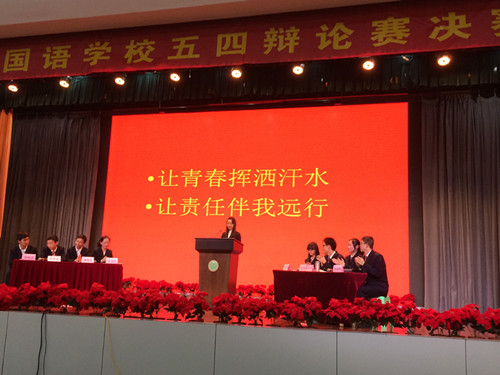 2014年5月4日,五四青年节。作为一种特殊的庆祝方式,我校高一、高二年级几百名学生在报告厅观看了“南京外国语学校五四辩论赛决赛”。