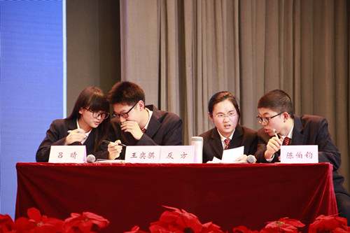 第一场辩论,高一高二双方辩手围绕“中国梦贵在于知或行”这一辩题展开辩论,从“钻木取火”谈到“改革开放”,以中国梦为出发点映射出社会大千。本场辩论最终在友好而激烈的氛围中以高二年级的获胜结束,金小力,杨景分获高一、高二最佳辩手。