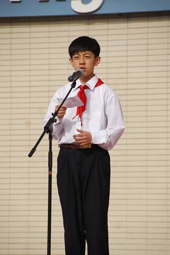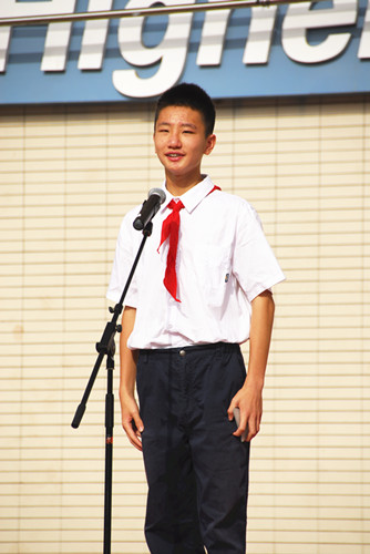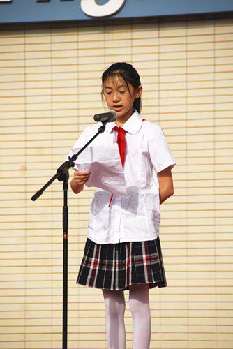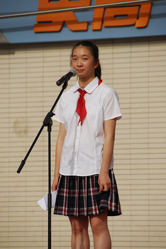 女:让我们有请初一(9)班的陆冉同学发言!