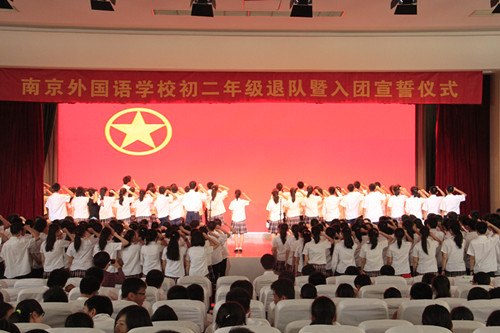 今年,我们初二全体的七百多名同学就光荣退队了,虽然并不是所有人都入了团,但从此就再也不能带红领巾了。我们目送着队旗最后一次入场又最后一次退场,唱了最后一次队歌,心中还是有些怅然的。