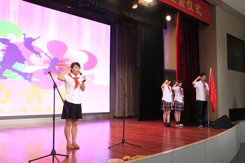 今年的五月三十日是我们全体初二同学特别不同的日子。如果之前还带着红领巾的我们仍是儿童的话,那么现在摘下红领巾举着右手,对着鲜艳的团旗庄严宣誓的我们,就真正成为了青年,成为了祖国的栋梁。