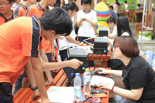 现场师生排队有序地咨询、买票,短短三个小时,门票销售额已突破四万元。