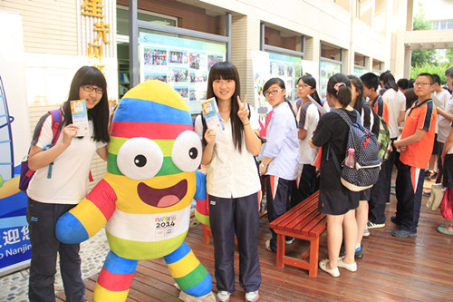 6月11日下午两点半至五点半,青奥组委会售票车开进我校校园,面向全体教师和学生售出青奥各