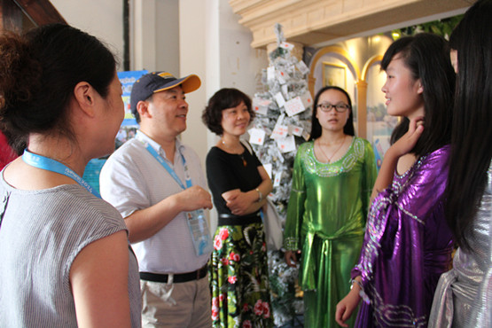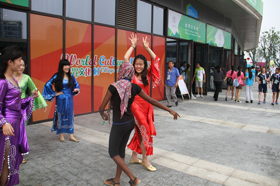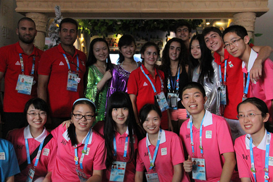 值得一提的是,我们的舞蹈小演员不忘忙中偷闲,在舞蹈表演的间隙将神曲小苹果带入了青奥村,如此接地气的音乐配上我们精致的舞蹈服竟不显凸兀,反而有一种民族文化交融的奇妙之感。