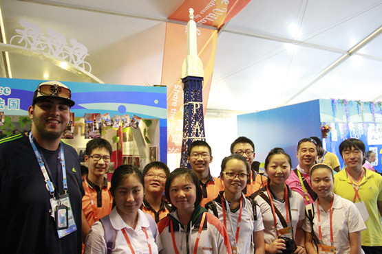 中国人素来钟爱喜庆的红色,如果有“国色”的话,红必能当选。因此,青奥村中国馆的屋顶,也是火焰的颜色。作为村里最具标志性的建筑,中国馆自然少不了那抹红。从篆刻着中华文化的印章,到交织着民间技艺的云锦,甚至是那携带着欢声笑语的风筝,都烙着红色的印迹。
