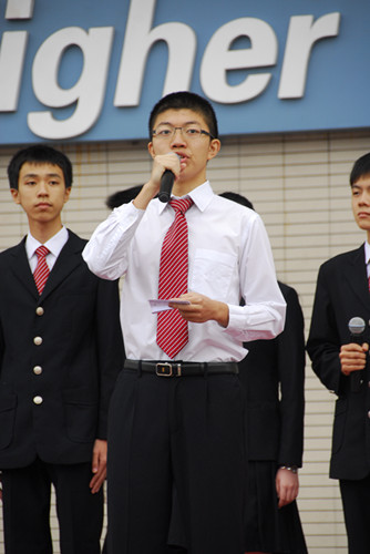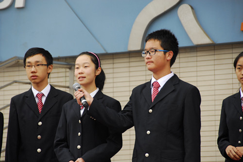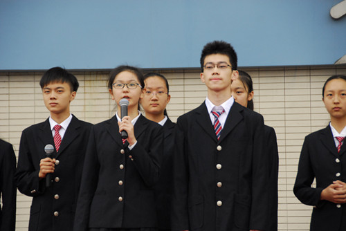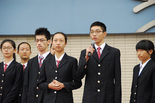 张:我是张粲。在老师们的关心指导和同学们的共同努力下,上一届的学生会工作顺利开展,感谢老师和同学们一年来对我们的支持和鼓励!