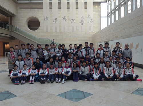 就这样,我们跟着赵老师,边走边聊。从竹林七贤谈到王羲之的兰亭序,从孙权建立政权联想到宋齐梁陈的血雨腥风。博物馆里的文物,在聊天的内容中似乎变得鲜活起来,不再静静沉睡在保护罩里,而仿佛是在诉说,他们亲历的故事,见证的变迁。通过他们,我看见了,触摸到了历史的脉搏,是如此的真实生动。不知不觉,已游遍整个六朝博物馆。离开时,回望着她,感觉自己与一位德高望重的智者进行了一次长谈。