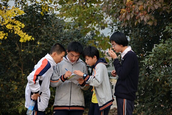 刚结束了紧张的期中考试,同学们来到白马公园秋游,开展定向越野活动,锻炼技能、放飞心情。