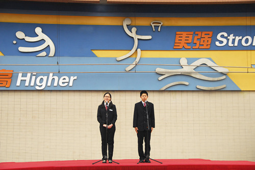蒋:好吧,这也算是一种打开文化隔阂的办法把。也请高一(4)班的丁青筠同学高一(6)班的魏央同学讲她们是怎么和外国人交流的。