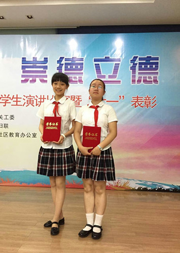 5月29日下午梅园街道“六一”表彰会在五十四中学礼堂隆重举行。我校初二(6)班陈洁同学和初二(9)班陈语欣同学荣获“梅园好少年”称号,另外,洪瑜、吕静两位老师荣获“优秀辅导员”称号。