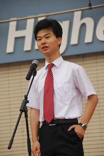 感谢张琛同学的发言并将掌声送给高考的勇士们,也祝愿他们都能拿到理想的成绩,考上理想的大学。