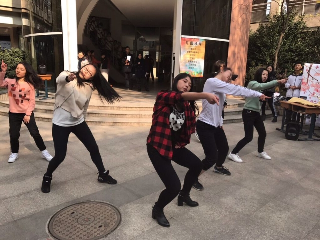 12月15日中午,旋转楼梯旁聚集着里三层外三层的同学,在这里,我校2016-2017学年社团沙龙活动正开展得如火如荼。瑟瑟寒风一刻不停地吹,却没有吹熄同学们内心的火苗,他们组织有序地依次上场,把精彩而别致的演出呈现给所有老师同学,也呈现给冬日的南外。