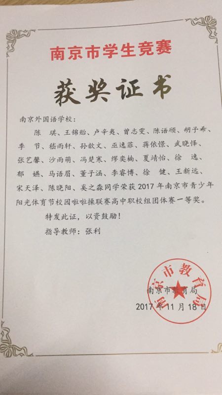 我校啦啦操高中组在张利老师的指导下,在体育组张老师和唐老师的协助下,舞蹈啦啦操(街舞)和技巧啦啦操两项比赛团体总分成绩优异,夺得高中职校组团体赛一等奖。