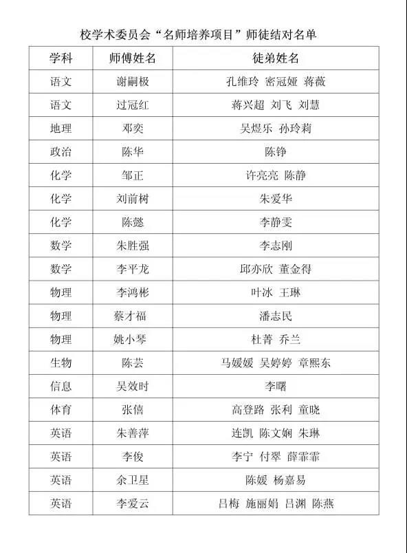 学术委员会主任邹正校长最后总结道,作为老师,既要仰望天空,又要脚踏实地;既要奉献,又要创新。他结合自身的工作经历谈到,面对实验,老教师踏实严谨的态度对他专业的提升非常有帮助。“咱们中学老师,需要有一种不断创新、不断学习、不断进取的理念,要做到与时俱进,才能站在学科专业的前面。”邹正校长还谈及最初教书时,利用业余时间,跟随南京大学教授进行课题研究的事,他说,只有热爱才愿意钻研,只有热爱才努力探究,虽然有些课题研究与中学教学没有直接关系,却对提升自己的学科素养、开阔认知视野以及高屋建瓴把握中学教学都有极大的帮助,这也许正是他当年能成为南京市最年轻的化学特级教师、首批教授级高级教师的原因吧。结合最近担任南京市正高级职称推荐委员会主任的经历,邹正校长告诉大家,这几年对教授级高级教师评定的要求越来越高,包括对课题、论文的精细要求,以及对上课状态、师德表现的整体评价等等,邹正校长希望通过这次师徒结对,师徒之间能够互相尊重、互相学习、互相欣赏、共同提高,加快骨干教师的专业成长,进一步提升南外教科研学术水平。