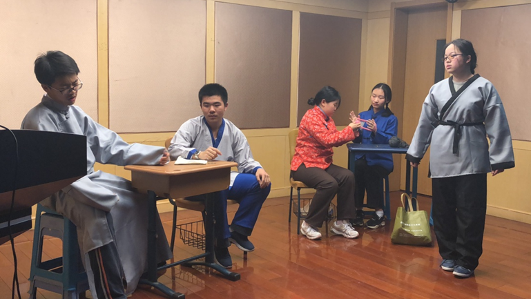 一定是因为,虽然班上有英德法三个语种,外语节时每个人都忙得不可开交,但是8班人仍然互相帮助,加油鼓劲。德法班帮着英班搬道具、调灯光;而德法班在小剧场汇演时,英班同学如约而至,坐满了整个小剧场并大声拍手叫好!