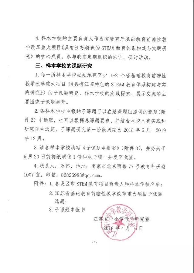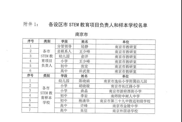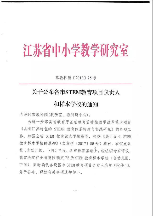 近日,江苏省中小学教学研究室正式发布了关于公布各市STEM教育项目负责人和样本学校的通知,我校被列为省STEM样本学校,朱征副校长被列为STEM教育项目负责人。
