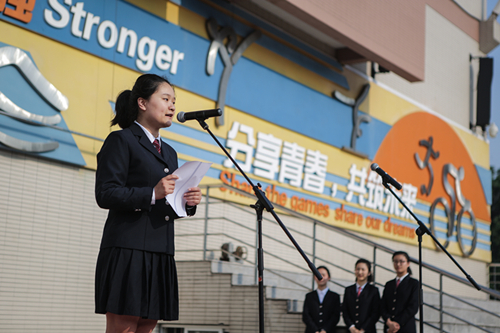 大家好!我是高二(7)班的潘乐萱。今天的晨会由我们为大家主持。