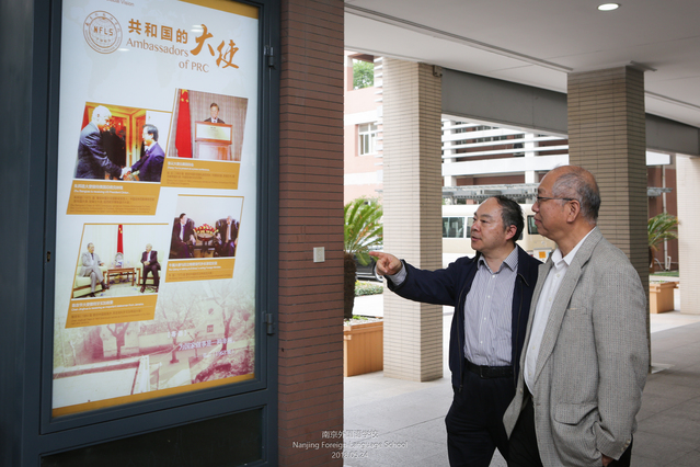 丘成桐先生在邹正校长的陪同下参观南外校园