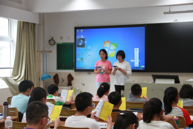 在音乐老师的带领下学习校歌《世界情怀》
