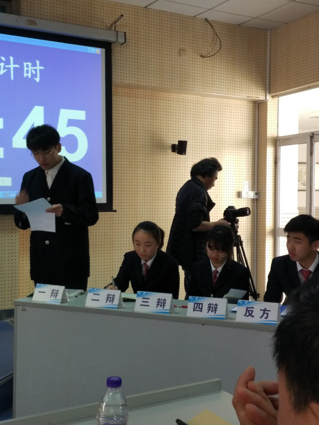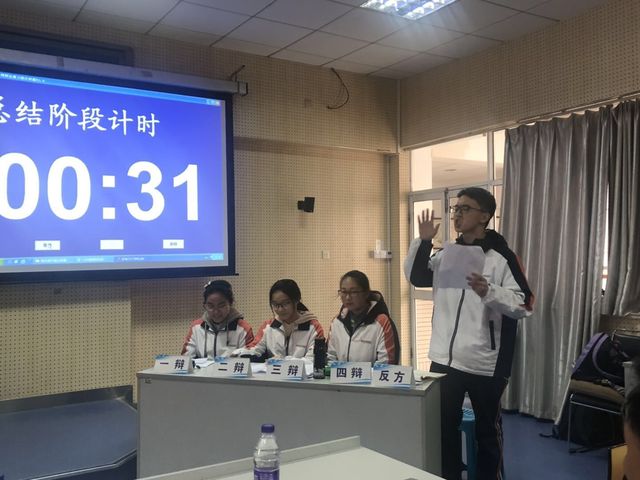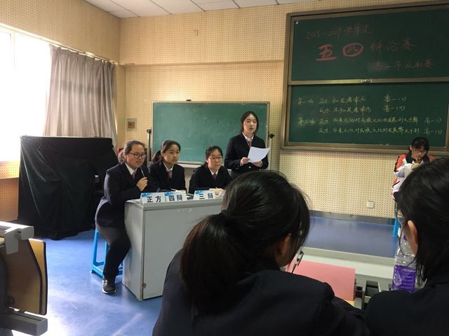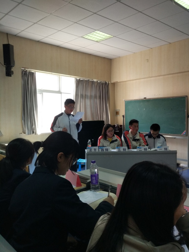 2019年3月18日下午3:00至4:30在E二、三楼阶梯教室,高一年级成功举办四场“五四”辩论初赛,高一年级全体同学到场观看了比赛。比赛分为五个阶段,第一阶段一辩破题理论,第二阶段二辩补充陈辞词,第三阶段三辩补充陈词,第四阶段自由辩论,第五阶段总结陈词。