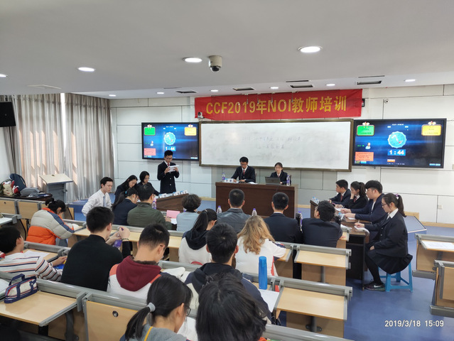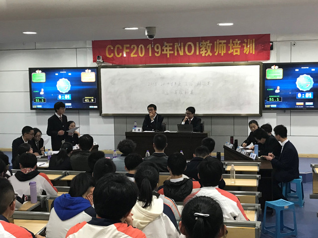 二楼阶梯教室赛场,由高三的李家祺同学担任主席,尹荷蓉、刘伟、王少林老师和侯允迪、潘浩同学担任评委,罗依凡、桂野同学担任计时员。