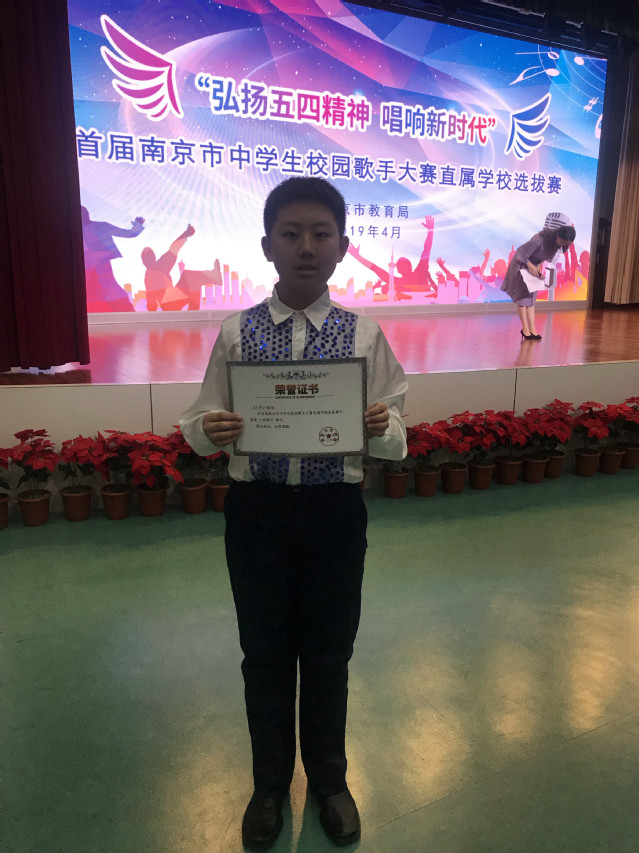 值得一提的是,在本次比赛中,大部分选手都是各个学校的艺术特长生,郝璟轩同学年纪最小,也并非特长生,赛场上能够不怯场且完整的演唱,赛出了南外人的风采!在此对郝璟轩同学的获奖表示祝贺!