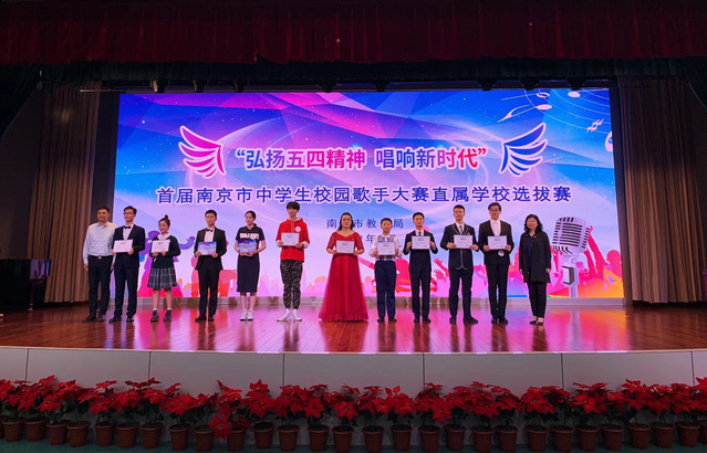 2019年4月19日下午,由南京市教育局主办的“弘扬五四精神,唱响新时代”南京市首届中学生校园歌手大赛直属学校的选拔赛在我校报告厅进行。