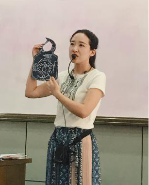 王媛老师选择的课题是《蓝白之美》,她以江南的颜色为导入,迅速吸引了学生的注意力。课堂练习与端午节联系在一起,手工香囊、五毒围兜,这些作品让她与同学们一起谱写了蓝与白的赞歌。