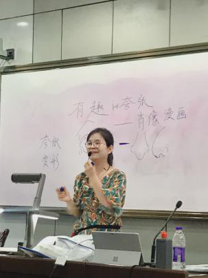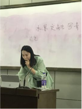 陈菁菁老师的《水墨交融写青山》则带领学生走进山水画的世界,如何运笔,如何点染,同学们听的津津有味。