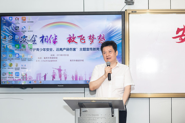 2019年6月3日下午,在南京外国语学校E2阶梯教室,初一9班和初二2班参与了“守护青少年安全,远离产品伤害”主题宣传教育活动,就我们生活中常用的学生用品和电子产品中可能出现的问题进行全面的了解、分析和鉴别。