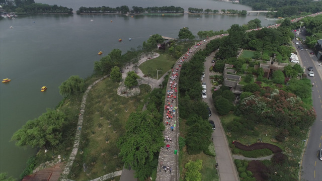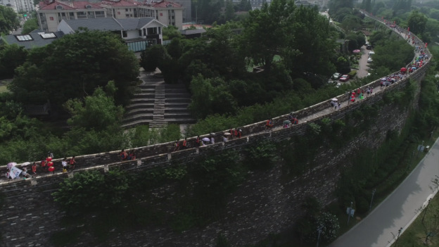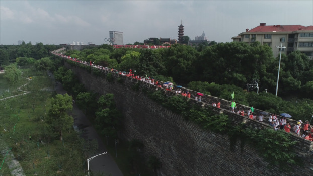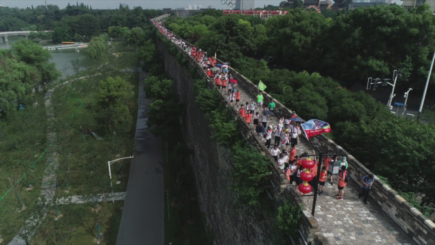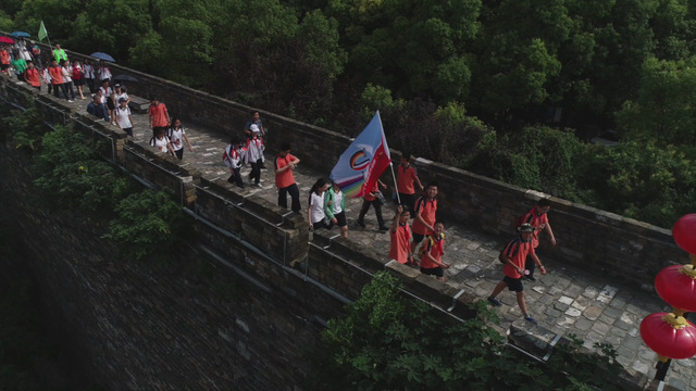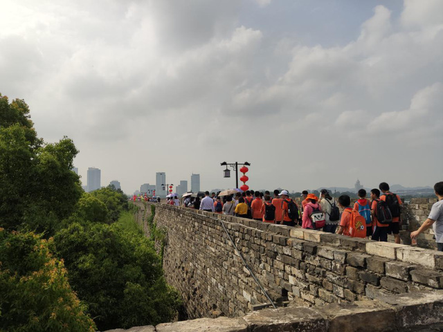 俯视400多人,在城墙上徒步的身影,郁郁葱葱的树荫,荫蔽着坚固厚实的城墙,中间走过的,是学生们朝气蓬勃的梦想。