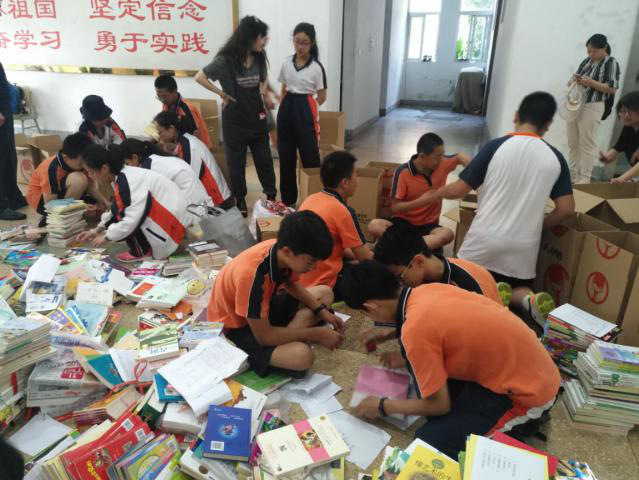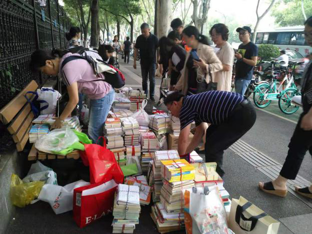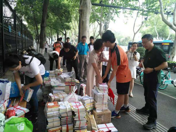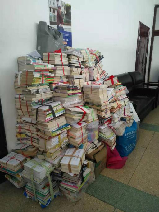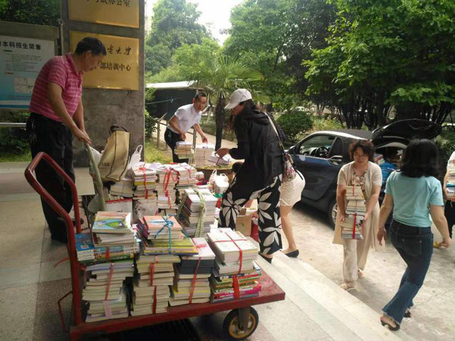 6月18日,全校的同学们都在紧张的期末备考,古城墙俱乐部会员及家长们为了活动如期举行,已经开始行动起来了。为方便广大初一学生捐书,几位热心的志愿者家长早早来到南外大门外左侧,统一收集同学们带来的捐赠书籍,汇总后统一运往俱乐部会员阎朝文家长提供的堆放场地--南邮校区教学楼。收书、整理、搬书……一样样一件件一册册,都包含了捐赠同学对河刘中心学校留守儿童的孜孜期盼和深深关怀。