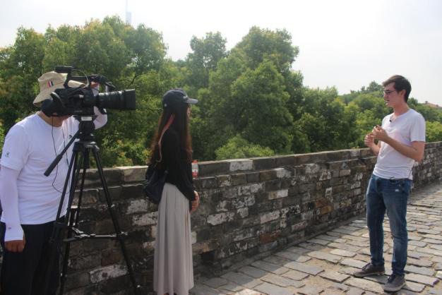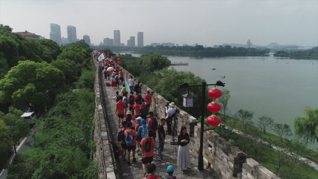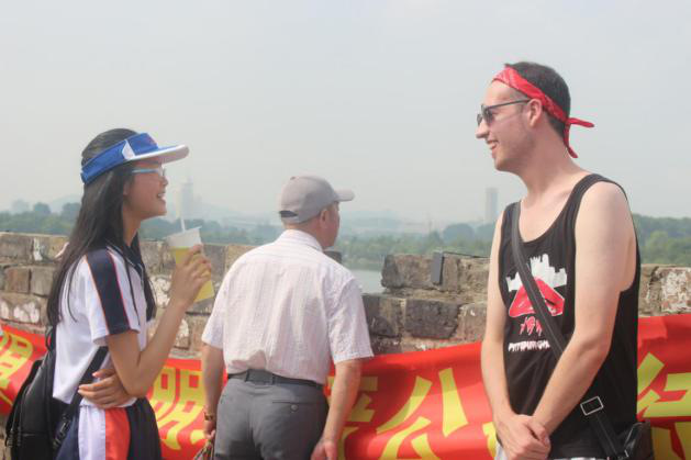 几名外国友人也来助力城墙徒步公益活动,感受南京城墙的魅力,增强对南京历史文化名城的热爱。