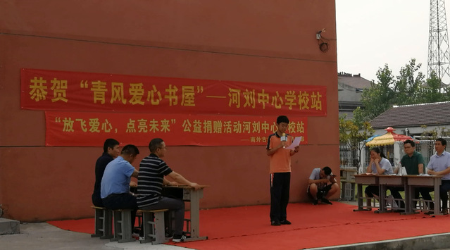 接着,学校在操场组织了一个捐赠仪式,此次古城墙文化俱乐部共捐赠图书1500册用于在河刘中心学校建立“爱心书屋”,圆孩子们的阅读梦,也实现了我们俱乐部“同在蓝天下,共享一本书”心愿;俱乐部为该校贫困学生和40多名留守儿童送去文具100套,书包25个,篮球、足球、乒乓球、跳绳等各种运动器材170个,帮助孩子们圆梦“微心愿”。