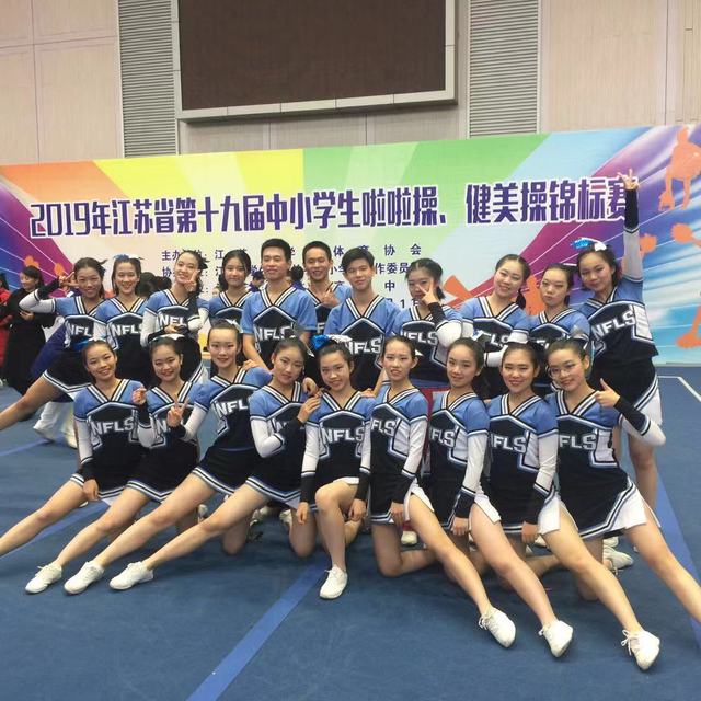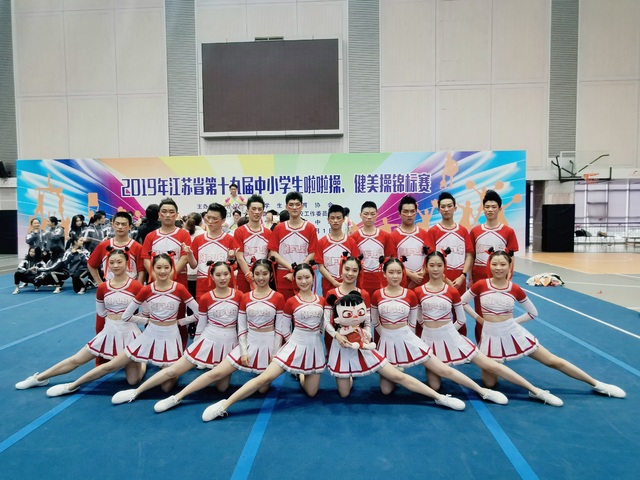 2019年11月29日至30日,我校高一及高二啦啦操队员在体育组倪霞老师、张利老师、唐秀娣老师和张僖老师的带领下,代表学校在江苏省常州高级中学参加了江苏省第十九届中小学生啦啦操、健美操锦标赛,并在比赛中取得佳绩。