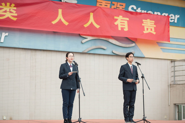 今天的晨会由我们为大家主持,我是高二(8)班的丰彦琪
