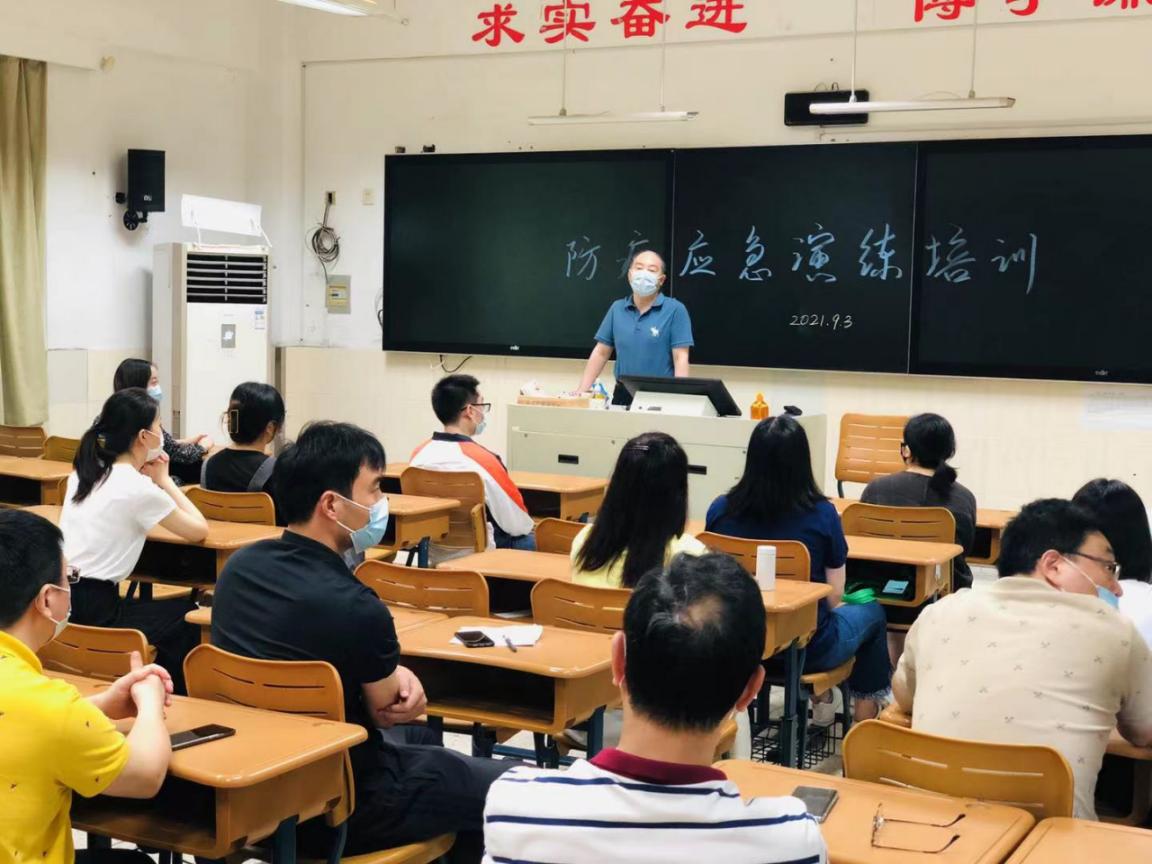 为提高教职员工疫情防控应急处置能力,为学生秋季返校上课做好准备,为保障全校师生的身体健康和生命安全,为维护校园秩序稳定,9月3日,南京外国语学校本部举行了新冠肺炎疫情防控应急演练活动。本次演练模拟了师生入校时体温检测、班主任晨午检、食堂突发事件处置、住校生晚检突发事件处置等情景。全体行政人员、年级组长班主任、新教师、校医、物业、食堂工作人员和宿管生活老师全程参与应急演练。