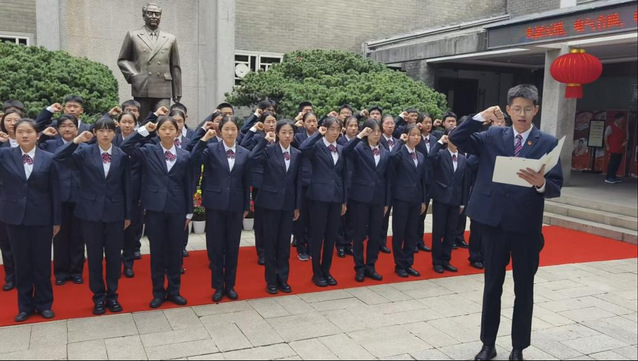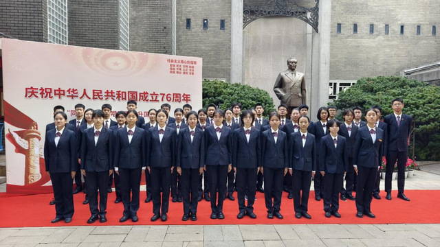 10月1日,我校2025届国旗班全体队员及老队员代表走进中共代表团梅园新村纪念馆,参加庆祝中华人民共和国成立76周年“同升国旗同唱国歌”活动并举行新队员入队仪式。