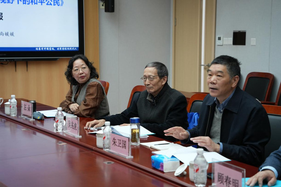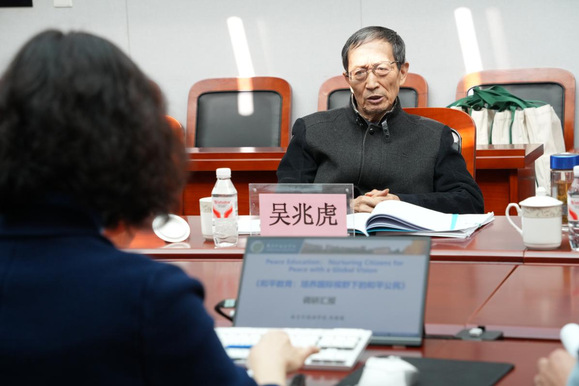 汇报结束后,专家们对项目进行了细致点评,并提出了建设性意见。江苏省教育学会朱卫国会长建议项目组深入思考和平课程在南外的定位问题——是作为一门选修课,还是面向更广泛的学生群体?他指出,这一定位将直接影响课程教学目标的达成度。江苏省教育学会秘书处办公室吴兆虎主任则强调,项目团队应进一步明确和平教育对学生产生的具体影响,以便更有效地评估教学成效,优化教学内容与策略。