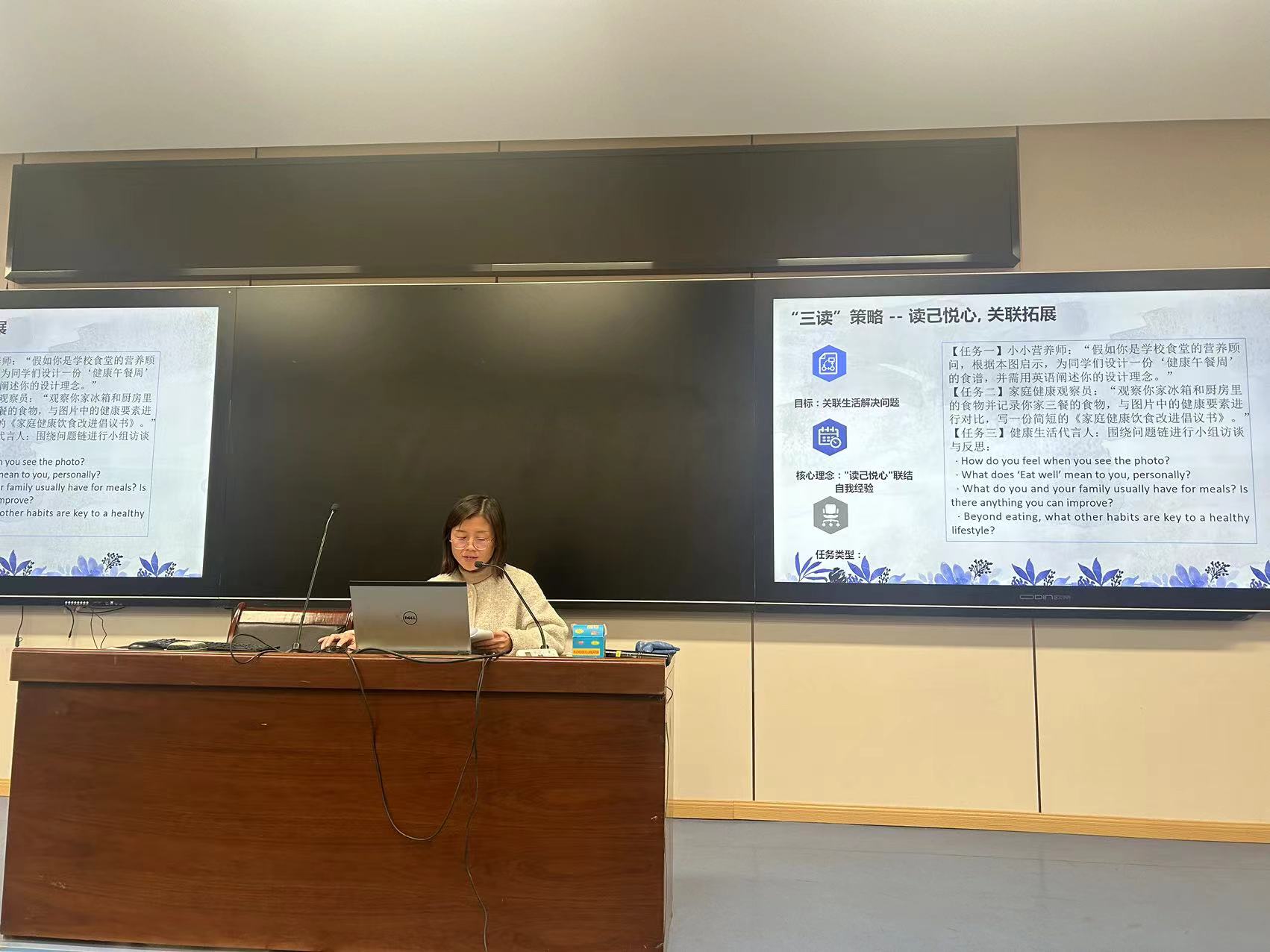 赵娟老师通过两个课例分享了南外使用新教材的教学实践。例如在有关青少年健康生活的阅读教学中,可补充跨视角阅读材料,并设计信息提取、对比分析等分层任务,既适配不同学情,又深化了核心素养培养。语法教学以真实情境为载体,让学生在运用目标句型时,同步锻炼协作能力与逻辑思维,助力学生语言运用能力与综合素养协同发展。